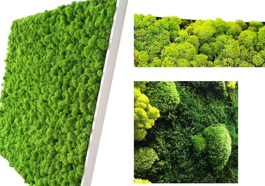 A diferencia del musgo en estado natural, el musgo utilizado para crear cuadros no necesita mantenimiento. Además, goza de gran durabilidad y excelente aspecto con el paso del tiempo.